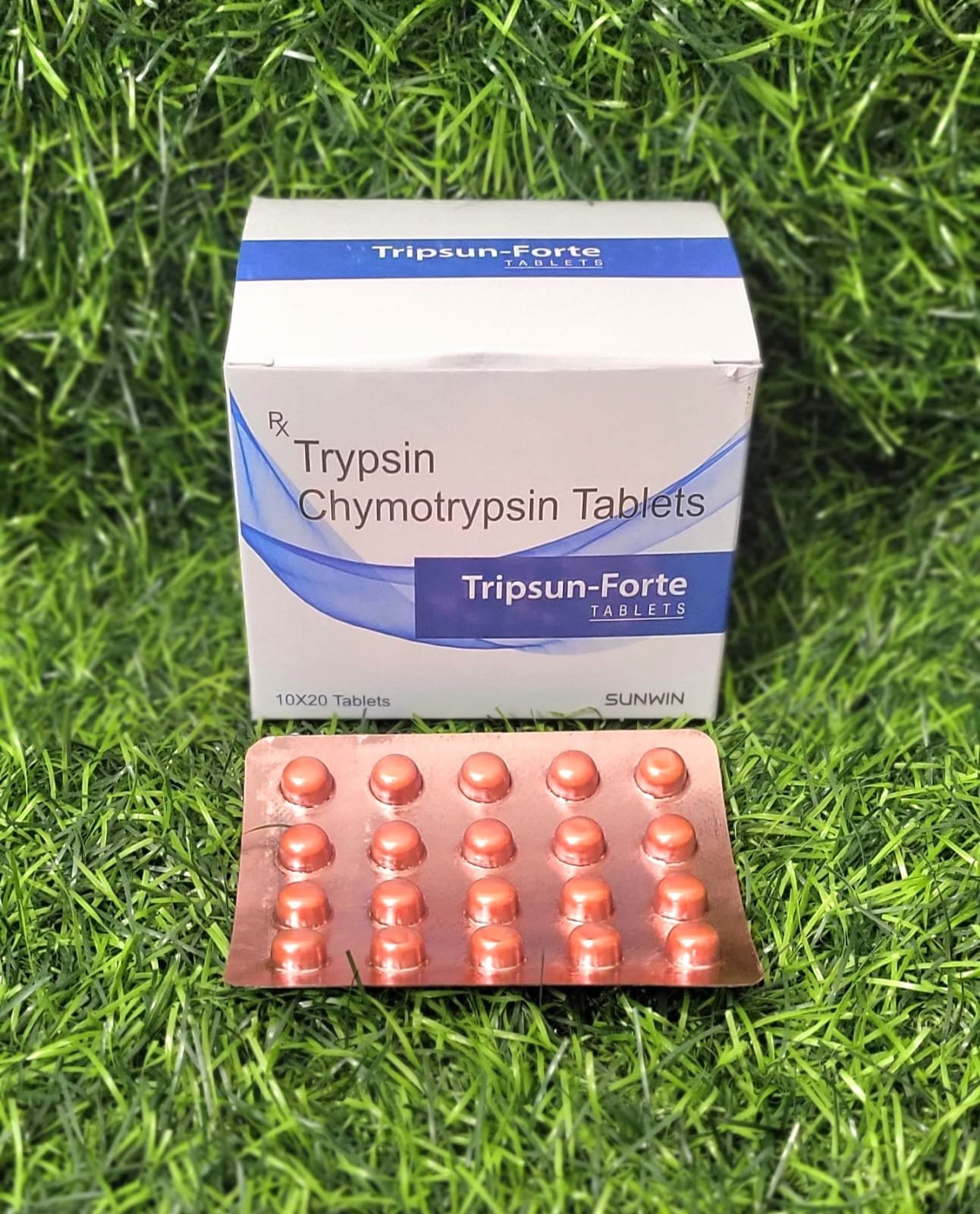 Composition:- Trypsin Chymotrypsin 200,000 AU Uses:- Trypsin Chymotrypsin 200,000 AU